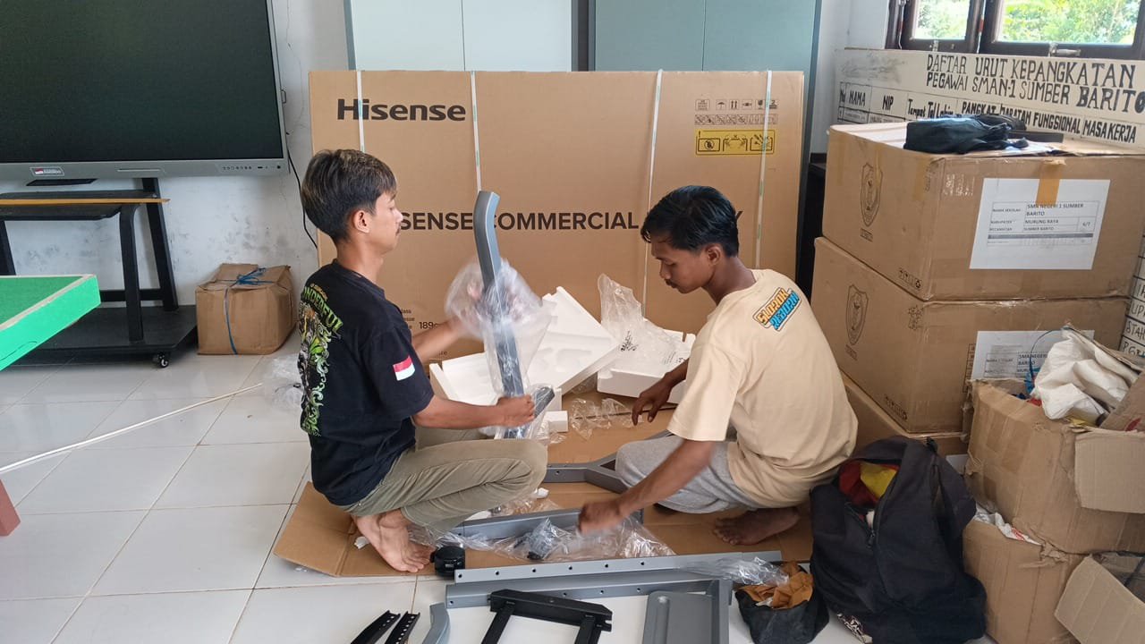 Pada kesempatan tersebut, tim teknis perakitan TV digital hadir langsung ke sekolah untuk melakukan perakitan perangkat serta memastikan TV digital dapat berfungsi dengan baik. Selain perakitan, tim juga memberikan pengarahan dan pendampingan kepada pihak sekolah mengenai cara pengoperasian TV digital agar dapat dimanfaatkan secara optimal dalam kegiatan pembelajaran maupun penyampaian informasi sekolah.